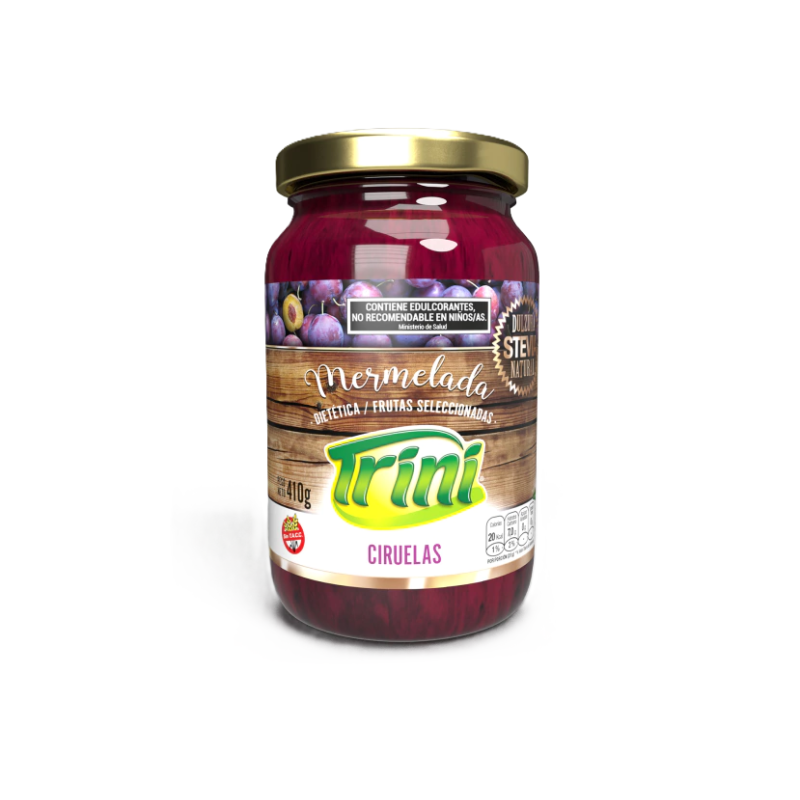 Ingredientes: Ciruela, Sorbitol, EST: carragenina, CONS: sorbato de potasio, EDU: glucósidos de steviol, ARO: esencia natural de ciruela, ACI: ácido citrico.