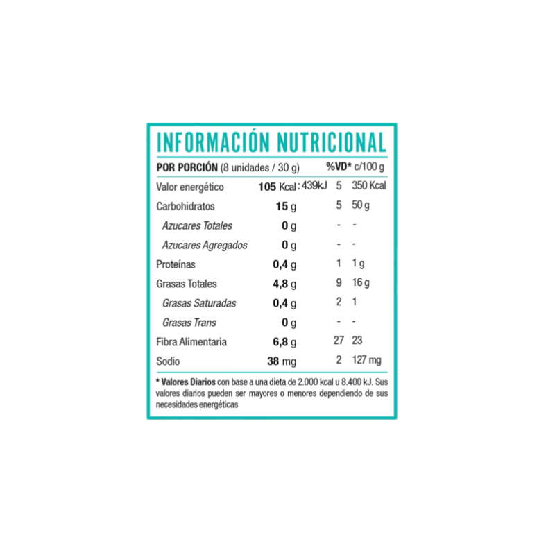 -Aporte de fibra por porción (27%VD)