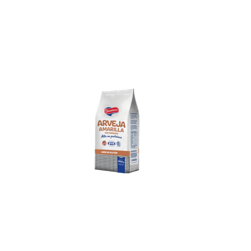 La arveja amarilla texturizada o carne vegetal, es un producto obtenido de la molienda, clasificación y posterior extrusado de arvejas, fuente de proteínas vegetales. Elaborada con arvejas NO GMO, sin conservantes ni aditivos.