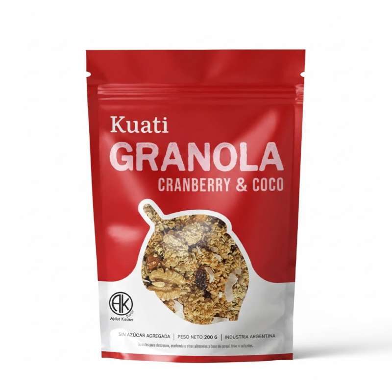 Ingredientes: avena arrollada, miel, semilla de girasol, arándanos rojos, coco en escamas, almendras, castañas de caju, avellanas y sal marina
