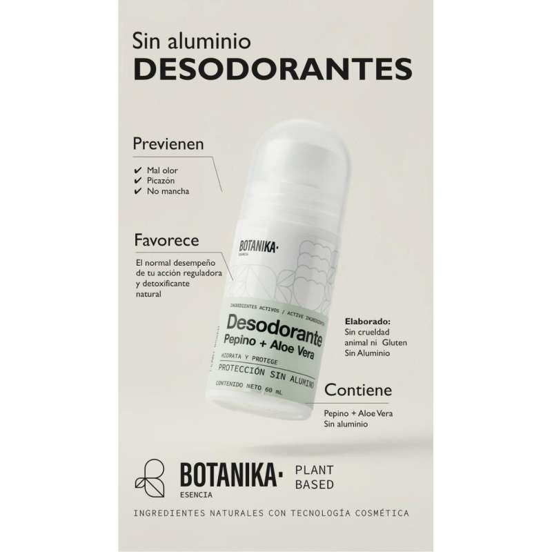 Desodorante Roll On Sin Aluminio Con Pepino + Aloe Vera X 60 ML BOTANIKA- NATIER