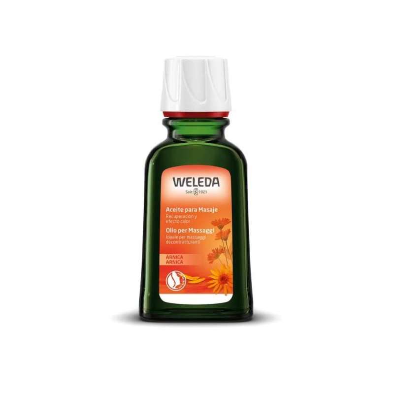 Uno de los productos emblemáticos de Weleda, el Aceite para Masaje con Árnica, es la esencia de la acción efectiva natural basada en plantas. Los aceites vegetales puros de girasol y oliva se mezclan con extractos de flores de árnica y hojas de abedul para suavizar la piel y mejorar su elasticidad y firmeza.