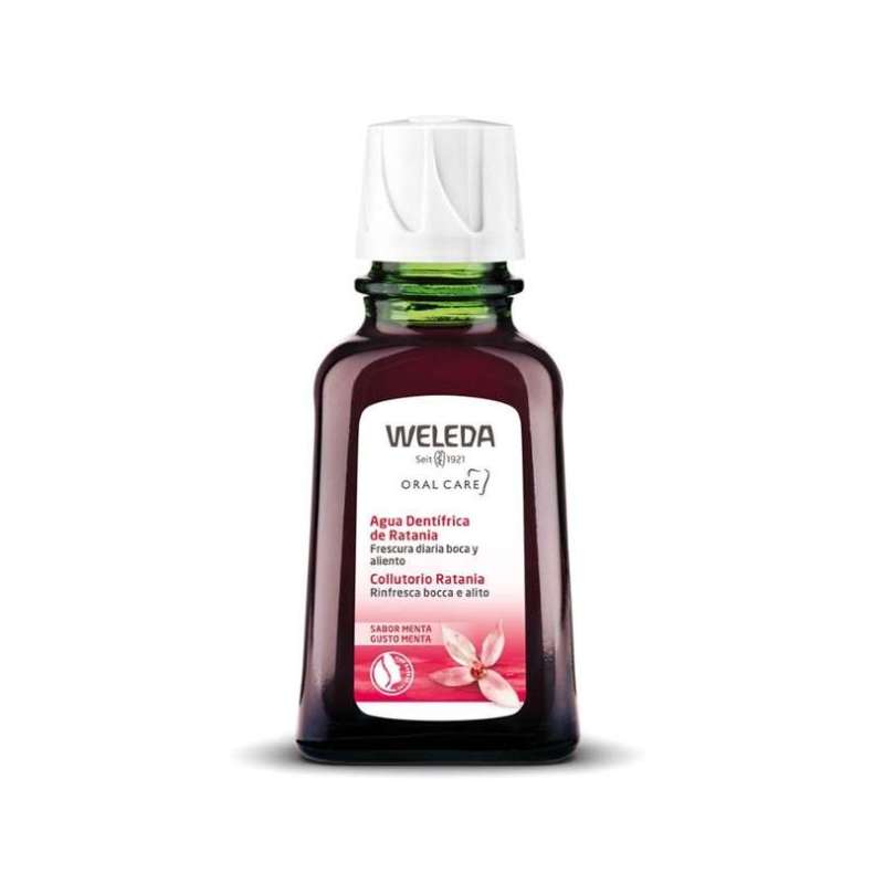 El agua dentífrica de Ratania tonifica, fortalece y refresca el enjuague bucal. El uso diario reduce el mal aliento y fortalece las encías sensibles. Es un cuidado dental natural certificado. No contiene azúcar