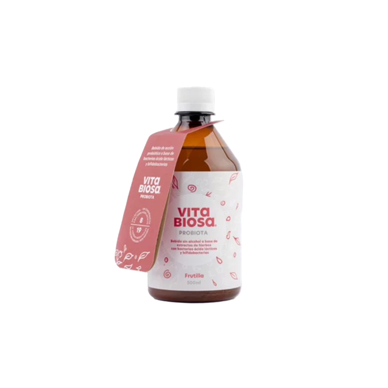 Bebida de acción probiótica con ingredientes pensados para el óptimo funcionamiento del sistema digestivo e inmunológico. Sabor frutilla