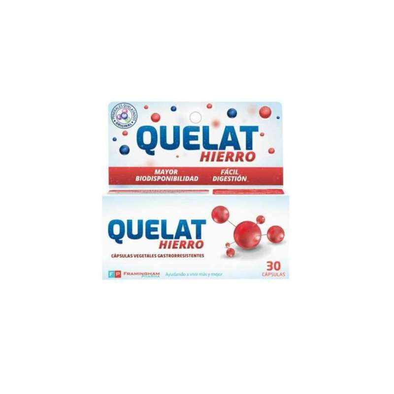 Quelat Hierro es un suplemento de hierro, en su forma quelatada, logrando una mayor biodisponibilidad, optimizando la tolerabilidad gástrica al hierro. Es una molécula de hierro que atraviesa estructuras intestinales sin degradarse.