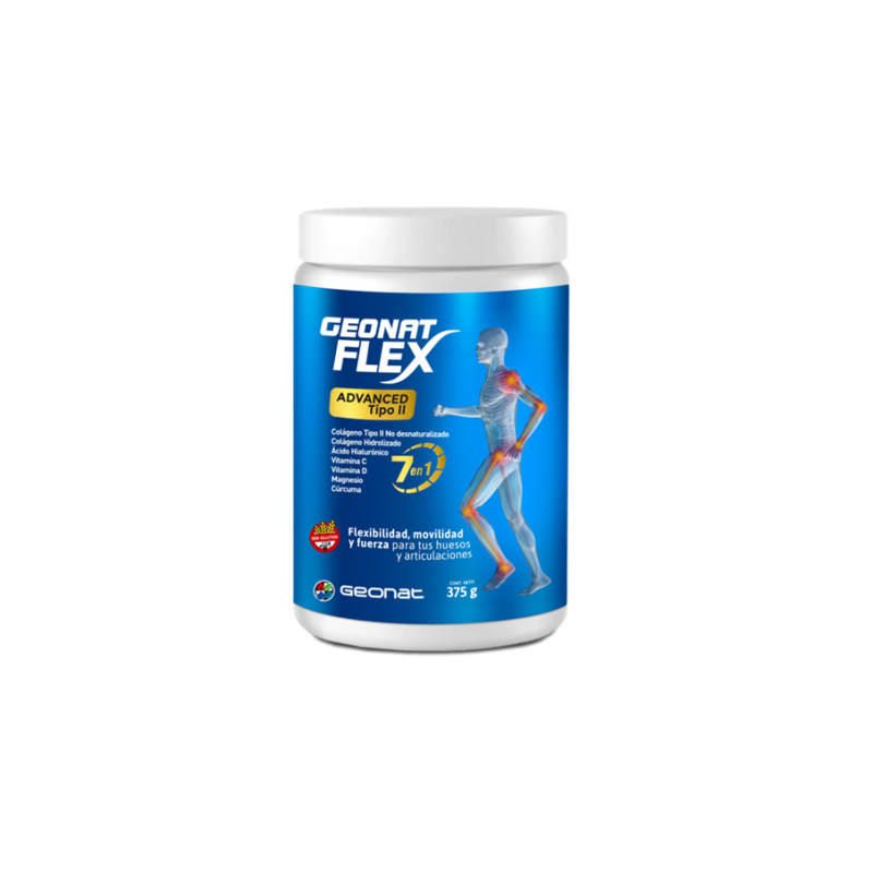 Suplemento en polvo con Colágeno tipo II No desnaturalizado, Colágeno Hidrolizado, Ácido Hialurónico, Magnesio, Extracto seco de Cúrcuma y Vitaminas C y D. Ayuda mejorar la flexibilidad de las articulaciones, aliviar el dolor y reparar lesiones deportivas. Actúa disminuyendo la destrucción articular de colágeno ayudando a evitar el desgaste.